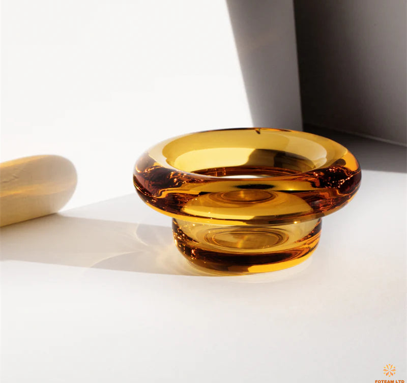 Bennett tea light candle holder, expertly crafted from solid pressed glass. The depth of color gracefully changes with the thickness of the material, creating a continuous ring effect of deeper, more intense color.